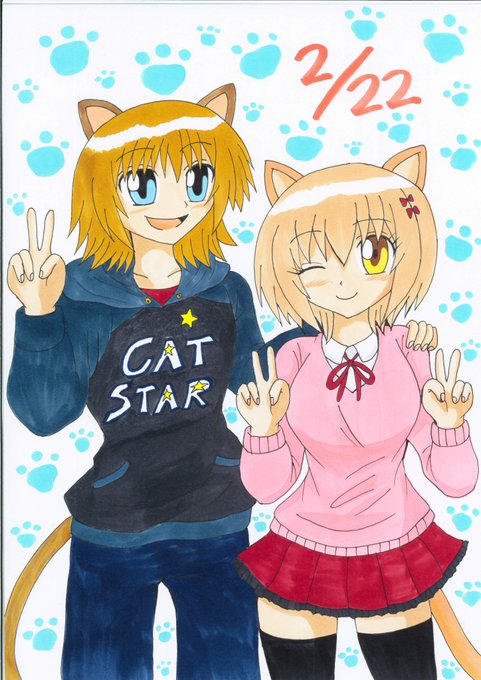全部過去絵で3枚目はコラボ絵です😺 ちなみに女の子はミュウで男の子がニケと言いますw(^^;) #猫の日 #ネコの日
