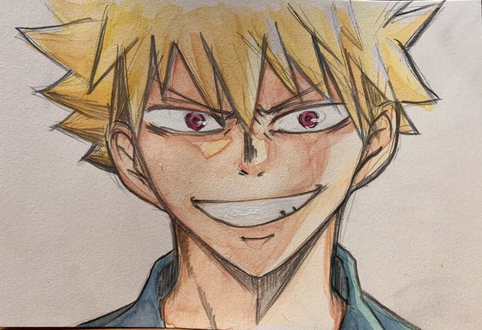 かっちゃん💥 ちょっとワルい顔描けたかな。 色塗りはこの前の翔陽くん参考に。しかし髪型難しいなぁ。 #ヒロアカ #爆豪勝己 #透明水彩 #ホルベイン