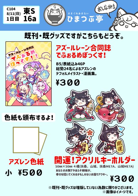 お品書きでも貼っておきますかー 既刊・既グッズはあるだけの頒布になります 今日からバチバチにミニ色紙描きまくるぞー!