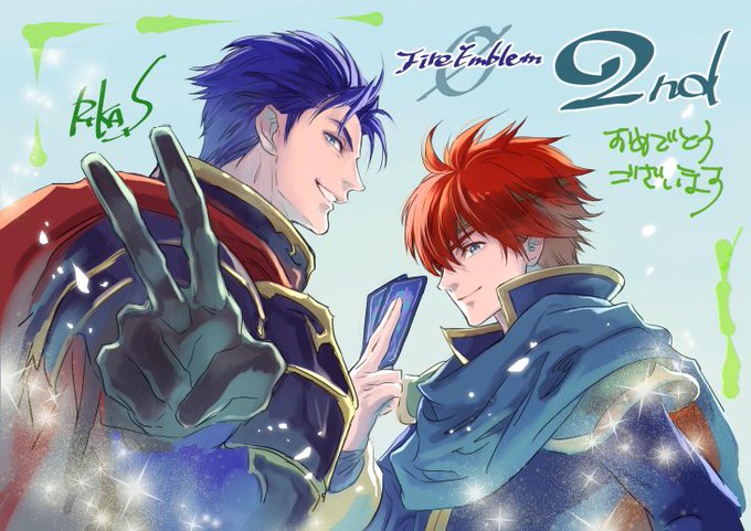【6月25日でサイファ2周年】鈴木理華さんから2周年のお祝いイラストをいただきました! 『烈火の剣』のエリウッドとヘクトルです! ありがとうございました! #FEcipher