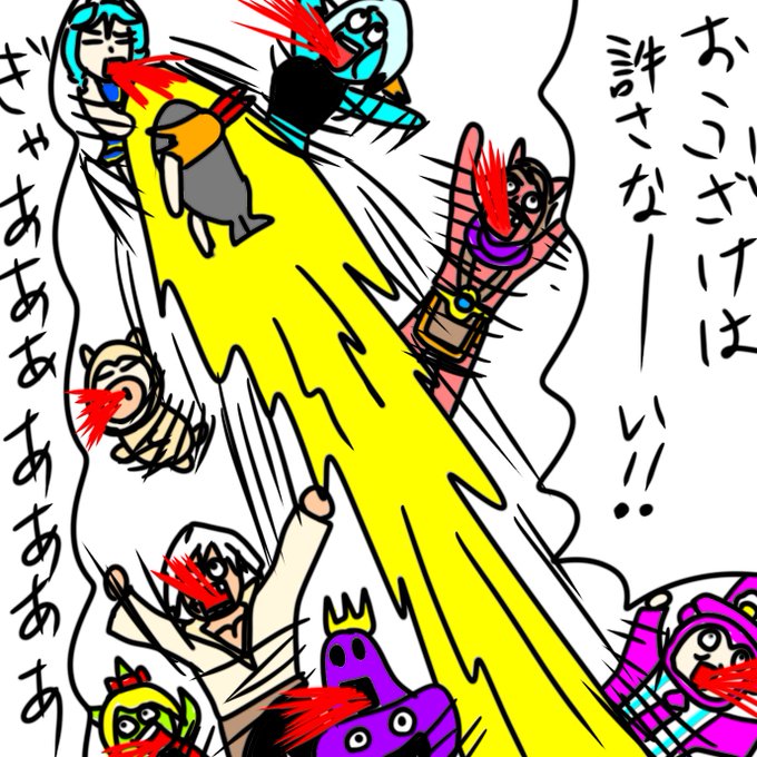 #今日のシンクさんお絵描き @taopaipaipai3(たぉぱぃぱぃさん) ボーボボ風ラスト〜 たぉぱぃぱぃさんメインにしつつ全員巻き込んでみた あーたくさん描いた 満足!