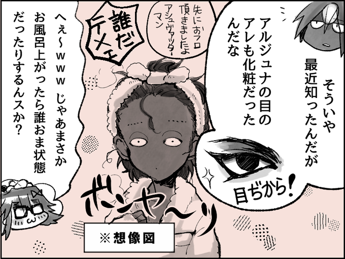 9 インド兄弟二人ともアイメイクガッツリっぽく見えるので、すっぴんと落差があったらジワるなぁと思いながら描きました。 #ほぼ毎日ジュナアシュ 実際のジュナは普通にすっぴんでおめめデカくて睫毛バシバシだと思います…念のため…。