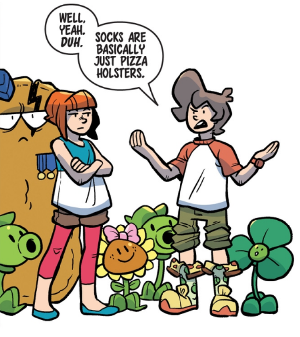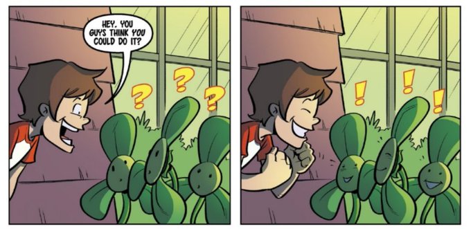 a silly thing I've noticed about the pvz comics is how surprisingly often Blover shows up in them, considering she's such a situational plant in the games. She's one of the most often recurring background plants and i think it's sweet :) (images r from volumes 1, 6, 14 and 19!)