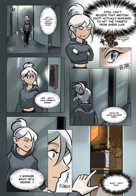 🧵Short little #cyberowl comic where the VP was in the middle of tracking down Fade. #ValorantArt #VALORANT (1/2) Special thanks to @mushrooherbsoup for helping me with flat colors!