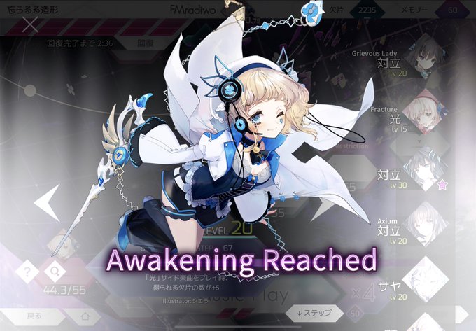 #Arcaea #グルコス アーケア×グルコスコラボパートナーの2人(ハナちゃんとリンカちゃん)ゲットかつハナちゃん(左の子)覚醒完了 今日までだったのでギリギリ達成できてよかったよかった! この2人は選んだ時に声出るのびっくりしました