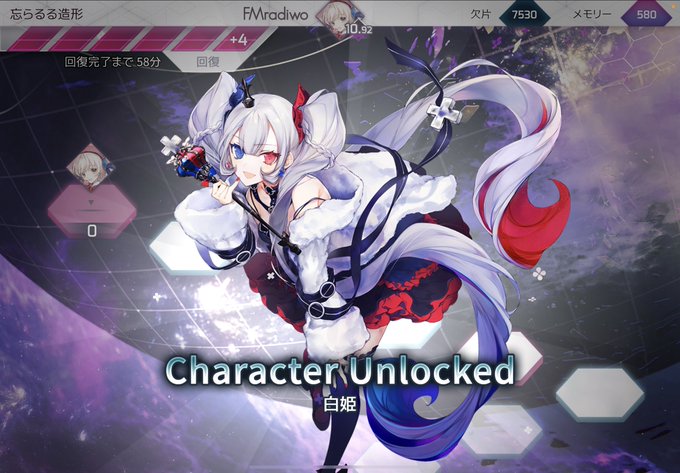 #arcaea Switch版の時出たキャラの白姫ちゃん! Switchのカラーリングに合わせた青と赤 ➕マークついてたりしてすごいいいな!って思ってました! かわええ! 曲のジャケット絵の多彩表情もいいぞお! シエラさんの絵ほんとうにいい!!