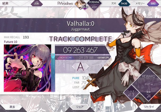 #arcaea Valhalla:0 Future 10初クリアー!! 段々と難易度10もクリアできる曲が増えてきて嬉しい!出来ない曲はとことんできませんが アークノーツ片手を振られながらその合間にもう片方の手のあーくのーつを触れなきゃいけないんですけどこれはその練習にいいかも!