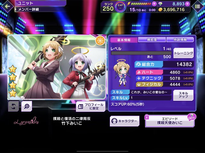 次のハピアラバレンタインイベントがスタイルがエメラルド対象だったのでハピアラのエメラルド見ていたんですけど、この初期恒常星3むにちゃん&にょちお可愛すぎない? ハピアラ初期星3は皆で遊園地に、しかも回るものの前にいたりします #D4DJ #グルミク #ハピアラ #大鳴門むに #にょちお