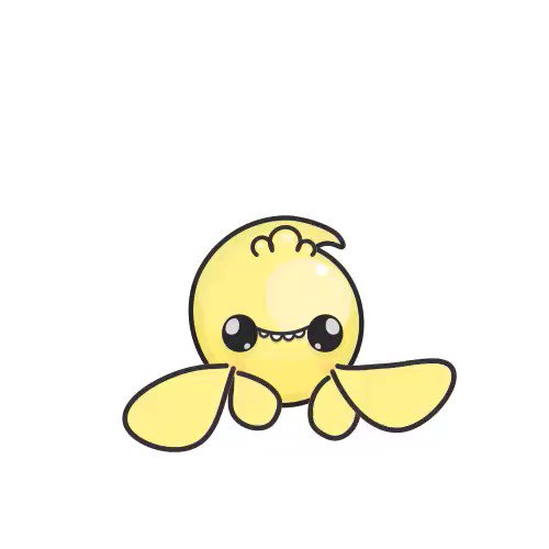 This Yellow Cartoon Sprite character with Butterfly hands , Jelly head and Simple Eyes