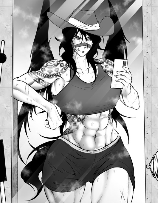 落書き 筋トレ後には必ず自撮りをSNSに上げる驪駒組長 🐎