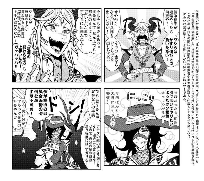 資金力がネックな驪駒組長に吉弔組長と饕餮会長がビジネスをレクチャーするわくわくシノギ漫画です 🐎🐢🐑