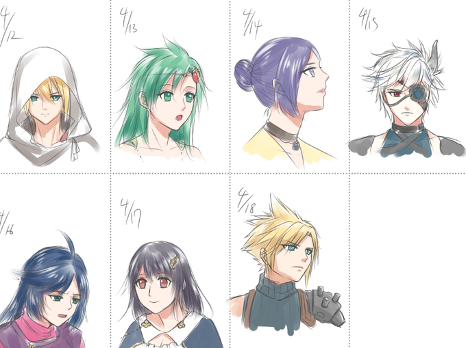 75日目。エッジ(DFF仕様)口の表情が隠れるけど、目が練習できるので問題ない。オールバック描いたのしばらくぶりだ。正直前髪より後ろの方をしくじった。ツンツン修行した方がいいかね……。