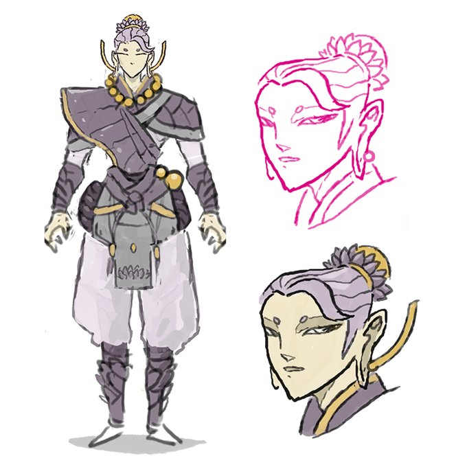 Sundari's design is heavily inspired by hinduism iconography and the ever-present in my mind, Saint Seiya. Again, improvising is not one of my strengths, so before turning to layout/lineart, I needed to design her.