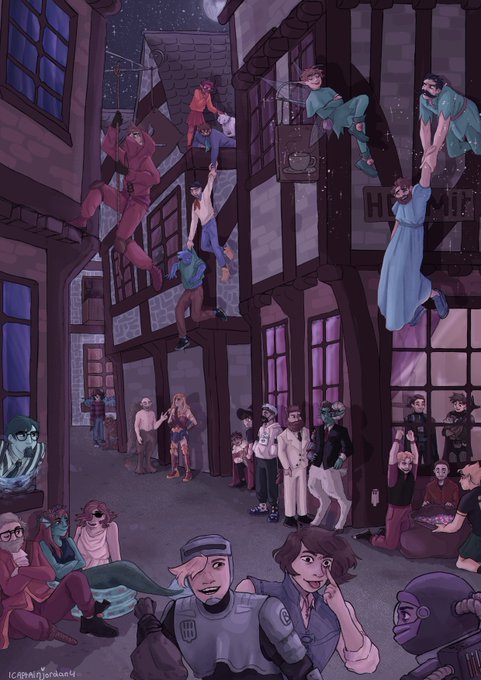 My piece of the hermitzine 4!! It features all the active and inactive hermits, with a few sidecharacters :]