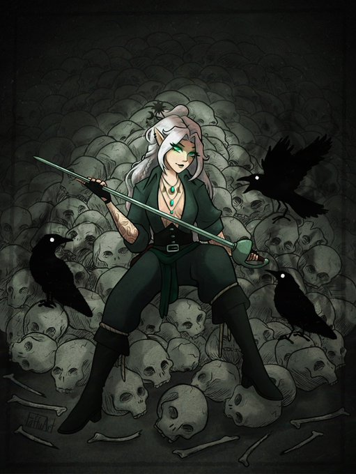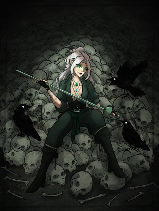@PavettaDraws I offer you… either of my gals 🥺 Aisling with the white hair and Selene with the red hair