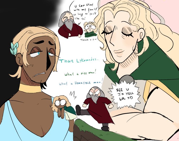 Really dumb #HadesGame doodles inspired by these two having some VERY different interactions with the same man