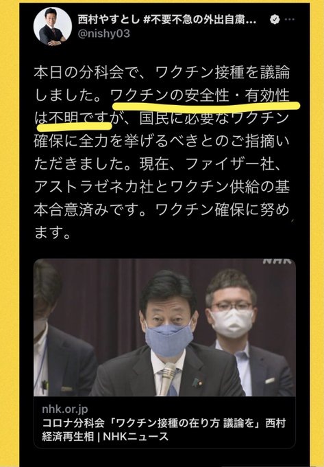 私の調べたデータや記事、論文、動画のツイートを読んだり見たりしても よしワクチん打とう✨って決断する人がいたらある意味本当に凄い人。喜んで特攻隊に入る人みたい 私はデメリットしかないと判断したから 打たないけど😞自己責任になる事を納得してサインしてるなら💀後々騒げないね💦