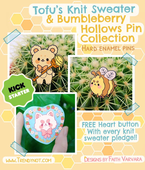 Big news! Tofu’s Knit Sweater and Bumbleberry Hollows Pin Collection launches TOMORROW 3:00pm mst.!! Hope you like everything! I’ve added a link for my prelaunch page if you’d like to check it out https://t.co/aTW505yNiY