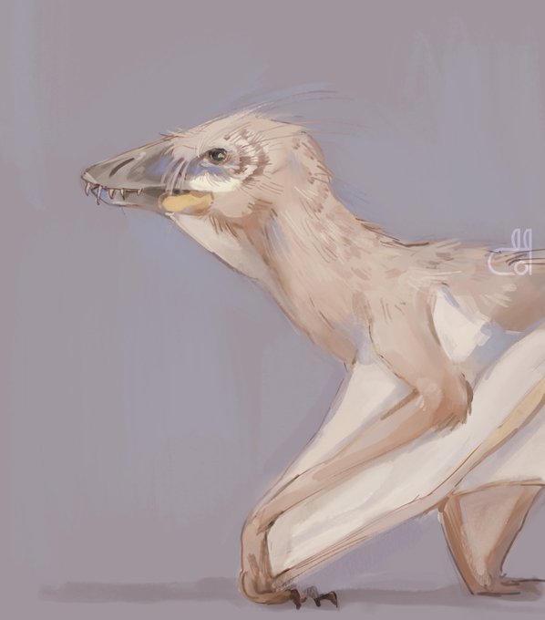 Bambiraptor! What a cute fella, these guys proporotions are super fun. This was really only supposed to be a quick sketch, but then i got way too into it and paineted it :’).
