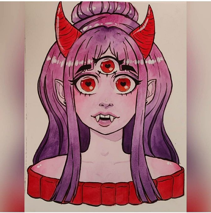 @ika_himee This is Jeannie, she's half elf, half demon. She sold her soul to save her dying father. Her wish was pure and selfless, so she didn't fully transform into a demon. She now works in hell, but made it her job to make all the others around her happy 💕