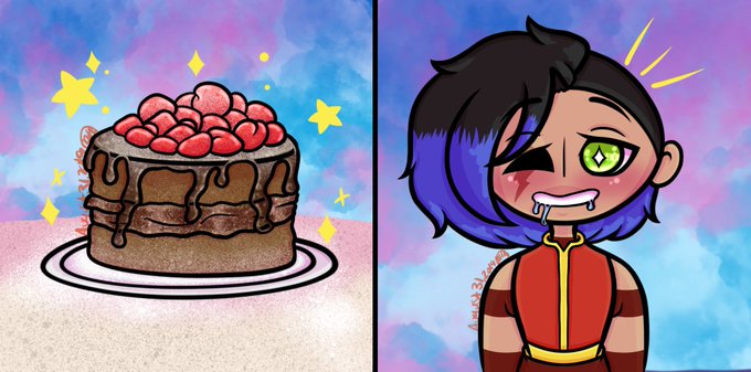 Just drew Eth seeing a delicious cake and wanting to eat it #cake #tasty #scar #drool #excited #cherries #chocolate