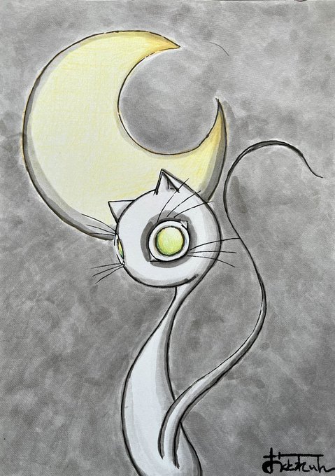 ネコ楽描き。 見あ〜げてごらん、夜空〜の星を♪ #色鉛筆 #ねこ #Starrysky