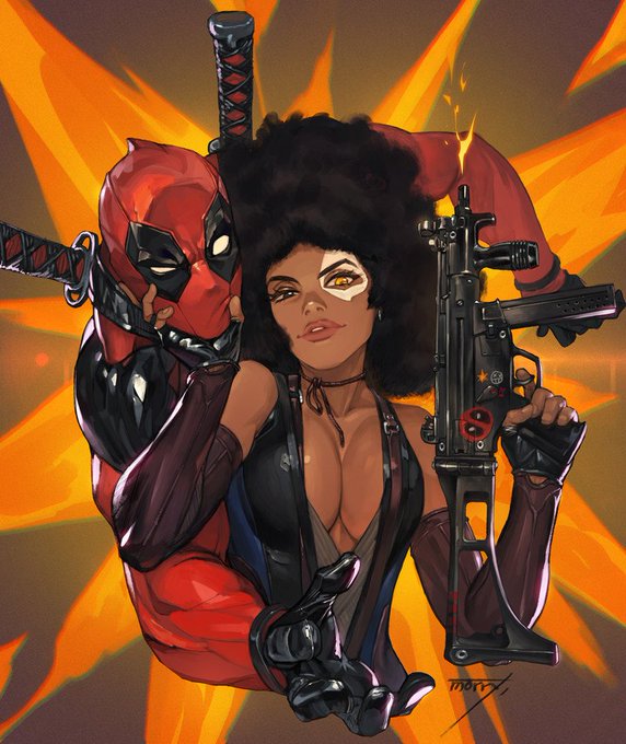 @Deadpool refait la déco en mode Black Red White façon Ninja art by @AdamKubert 😃 colors by @frankmartinbox