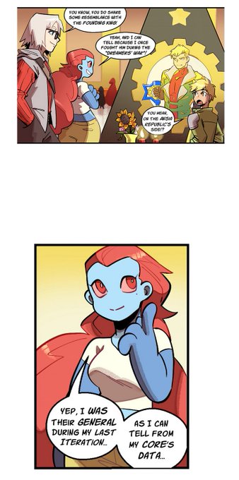 Eva now mentions that, in a "Twist" executed similarly to Bertholt and Reiner in AoT, while She was on the Enemy side in the war, Her knowledge of that time comes from Datas, than actual experience, being a different "Iteration" of the Azureus that was once the General!
