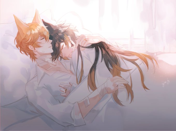 Lufus and Eva My oc in xiao and Childe costume 🤔🤔🤔