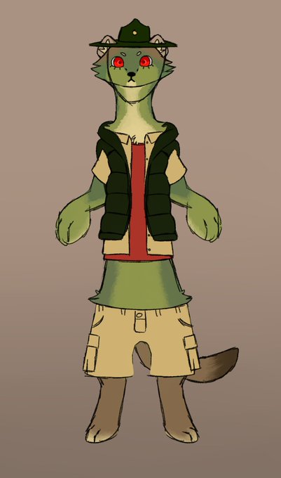 I spent all night last night making a stoat oc. He doesn't have a name yet, but he's a forest ranger who ritual sacrifices people who litter or don't put out their campfires to an eldritch god in the woods.