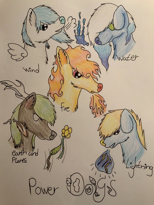 Sketchbook 4! This was the most creative so i went with this one. I’ll probably have less things to say about these as I go, but uh here’s some elemental dogs in the meantime