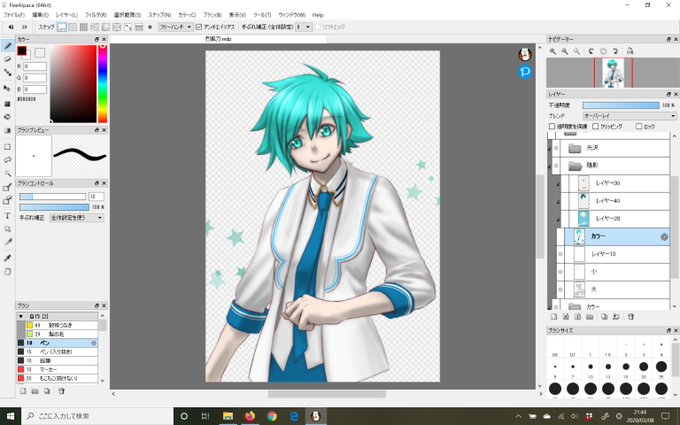 服の明度とか、余り上げすぎるとなんかへんだなぁ、と感じるから、もっと観察して書くようにしなきゃなぁ、と感じる。 でも書ききったことは褒めてよ!的な。