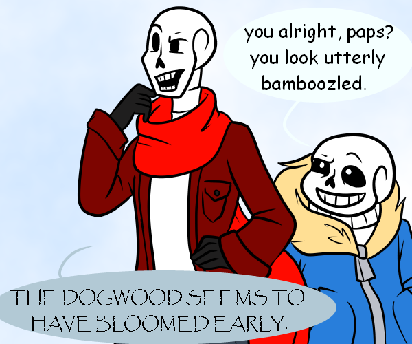 I've been cursed with this stupid "dogwood" joke for like a year. Happy Papyrus Day, Papyrus. You get to remind people that you also make puns of your own. (1/2)