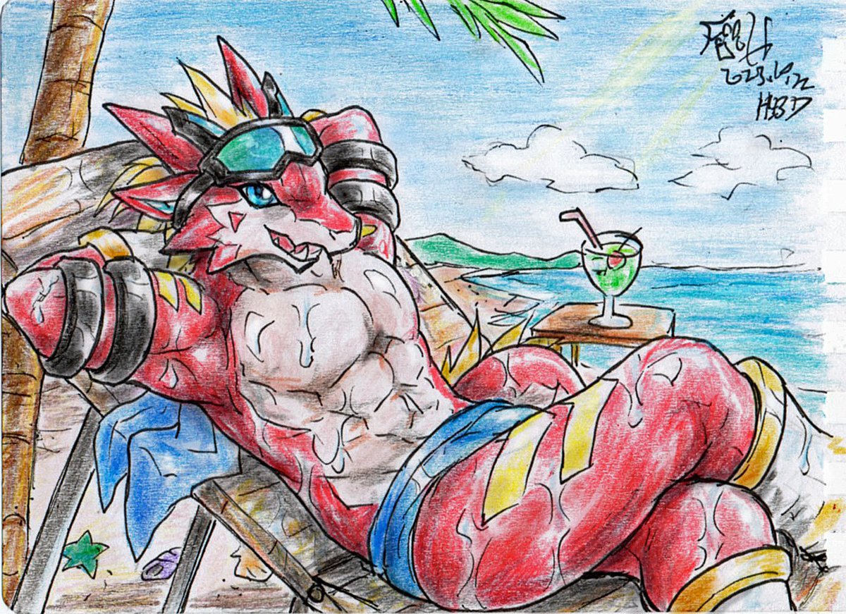 【FanArt】🏖️給雷穆斯🐲( @dragon_rms ) 10/22 祝你生日快楽〜🎉🎂