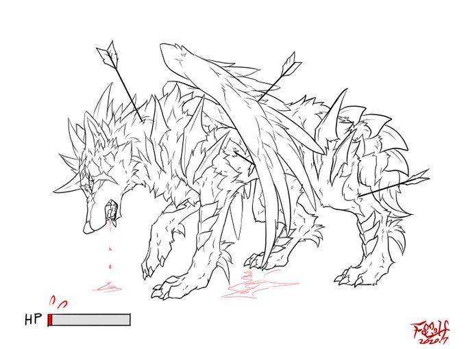 7/14誕生日おめでとうございます🎂 朝の1時間で、夜の危ない狼さん描いてみました🐺