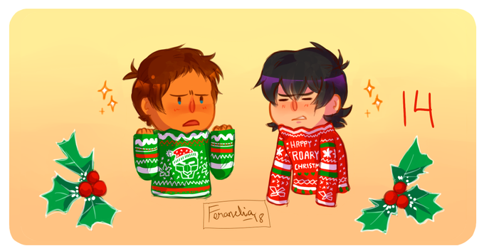 13-14 (7 Days ‘til Christmas🎄) Yup, still loving and doodling #Klance!~ This time with some christmas shopping and ugly sweaters<3