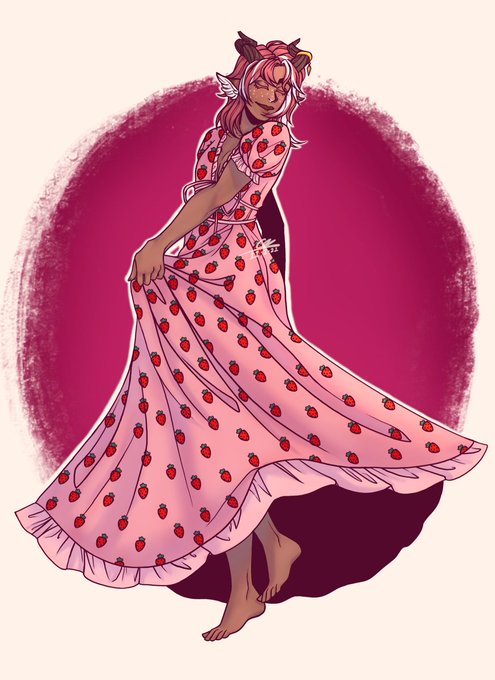 A friend showed me a bunch of drawings by @studiojhiggli of the main three in the strawberry dress, so i thought why not throw my hat in with my favourite deer boi?