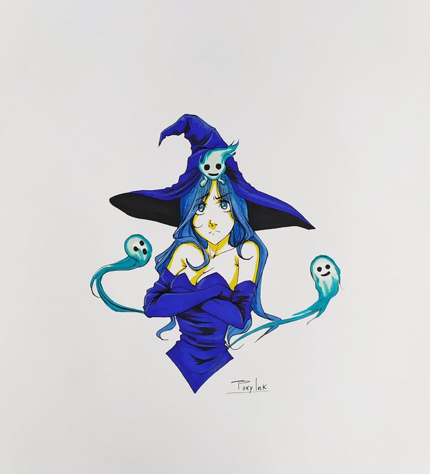 #inktober #inktober2020 #witchtober #ink #witch #girl #blue #magic #wisps #fire #ghost #drawing #markers #traditionalart