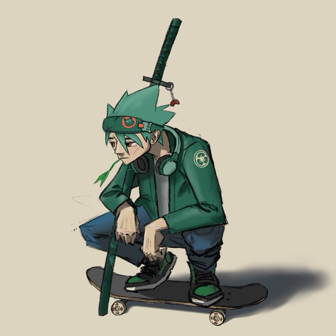Playing around with some styles and can't get enough of the @AzukiZen designs. Just a quick study of @steamboy33 chilling out, creasing his pine green 1's. #AzukiArt
