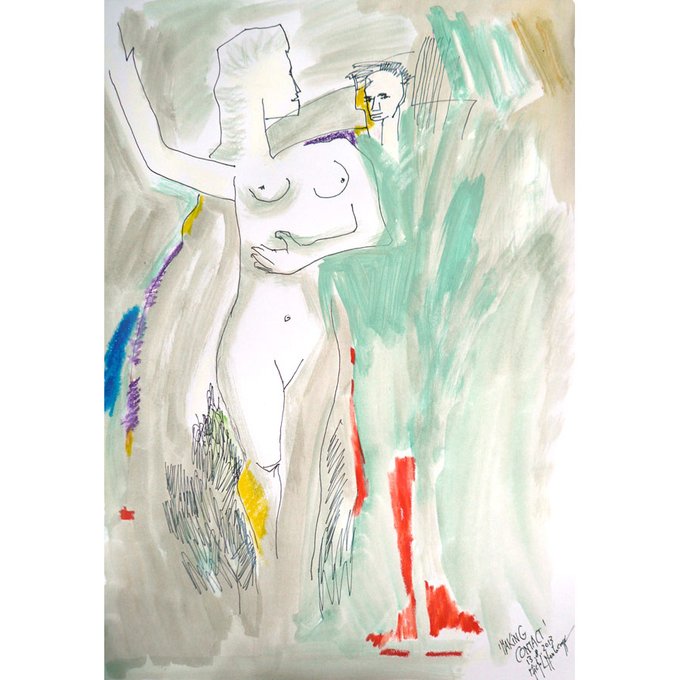 It's all about the Spirit of #Woodstock feeling: music & more .. #drawing by Michel Montecrossa ’Encounter’ – Encounter Suite #5 #Montecrossa #woman #ink #fineart #art #artforsale #contemporaryart #artist #artwork #SpiritofWoodstock #rtArtBoost #rtItBot #MuseBoost