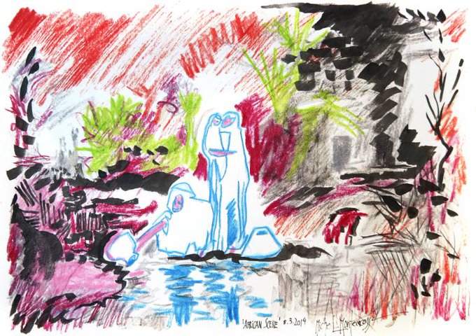 It's all about the Spirit of #Woodstock feeling: music & more .. #drawing 'African Scene' by Michel Montecrossa #Montecrossa #abstractart #African #scene #Africa #artist #abstract #fineart #artforsale #contemporaryart #shareart #rtItBot #MuseBoost #artwork