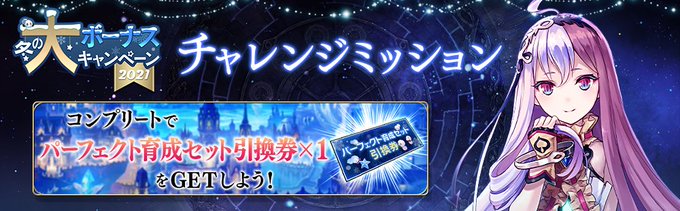 【キャンペーン】12/1(水) 0時頃より、冬の大ボーナスキャンペーン2021を開催!スペシャル召喚や『パーフェクト育成セット引換券』が獲得できるチャレンジミッション、特別ログインボーナスなどお得なキャンペーンを開催!この機会をお見逃しなく!詳細はこちら https://t.co/yqzgQmNqlA #タガタメ