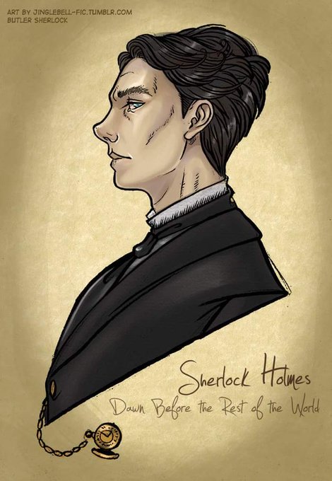Here's a beautiful,full-colour version of Butler!Sherlock by @jinglebellfic ! The drawing hangs in my writing nook.