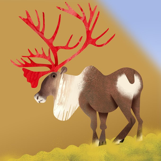 a caribou with the velvet shed from its antlers + a couple past Canadian wildlife illustrations I updated for my site