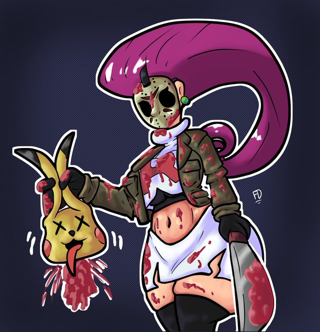 Jessie dressed as Jason Voorhees. #art #pokemon #Halloween #JasonVoorhees #FridayThe13th