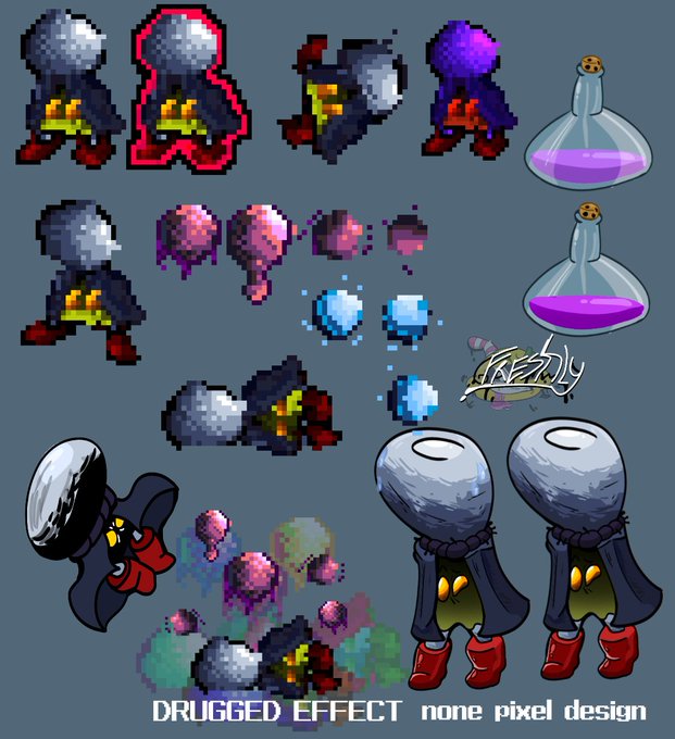 Ma first few pixel arts ah made recently, kinda proud of em matey this little guy is called rupert, a small adventure who specializes in magic.... Or does he?