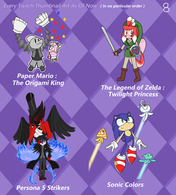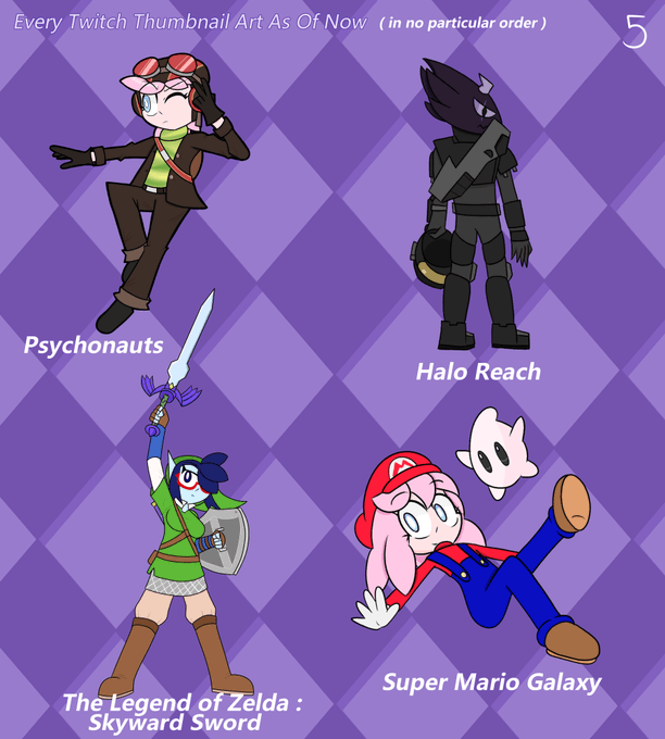 Since I haven't done a lot of art on here lately, I'm gonna post all the thumbnail art I did for my twitch channel up till now. ( 1/3)