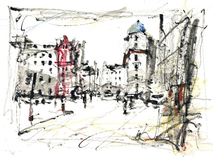 #London has long been a source of inspiration for @andyhoodart, he skilfully evokes the hustle & bustle of the city with his energetic & gestural mark making. See more in our book 'Sketches of Europe and Beyond' - free to view online! https://t.co/3PQPGNR8By