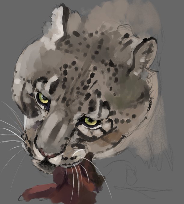 an unfinished snow leopard study