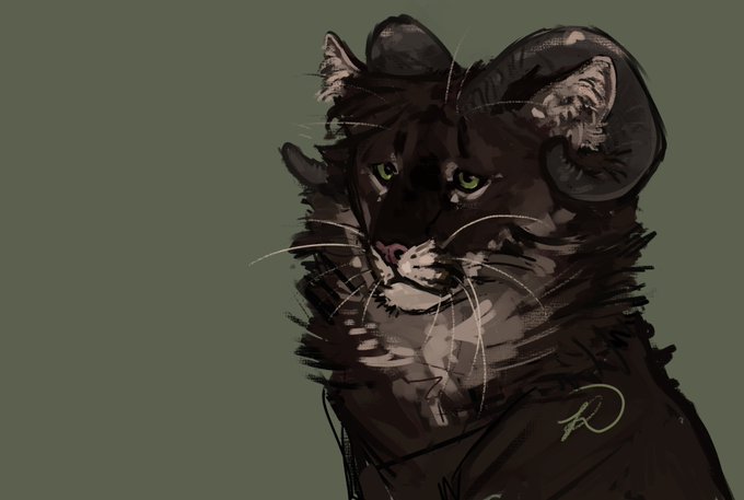 my medicine cat oc Rosethorn... his mother was a lynx and his father was a maine coon! he speaks with a bit of an accent because the lynx language was his first, he's in Riverclan